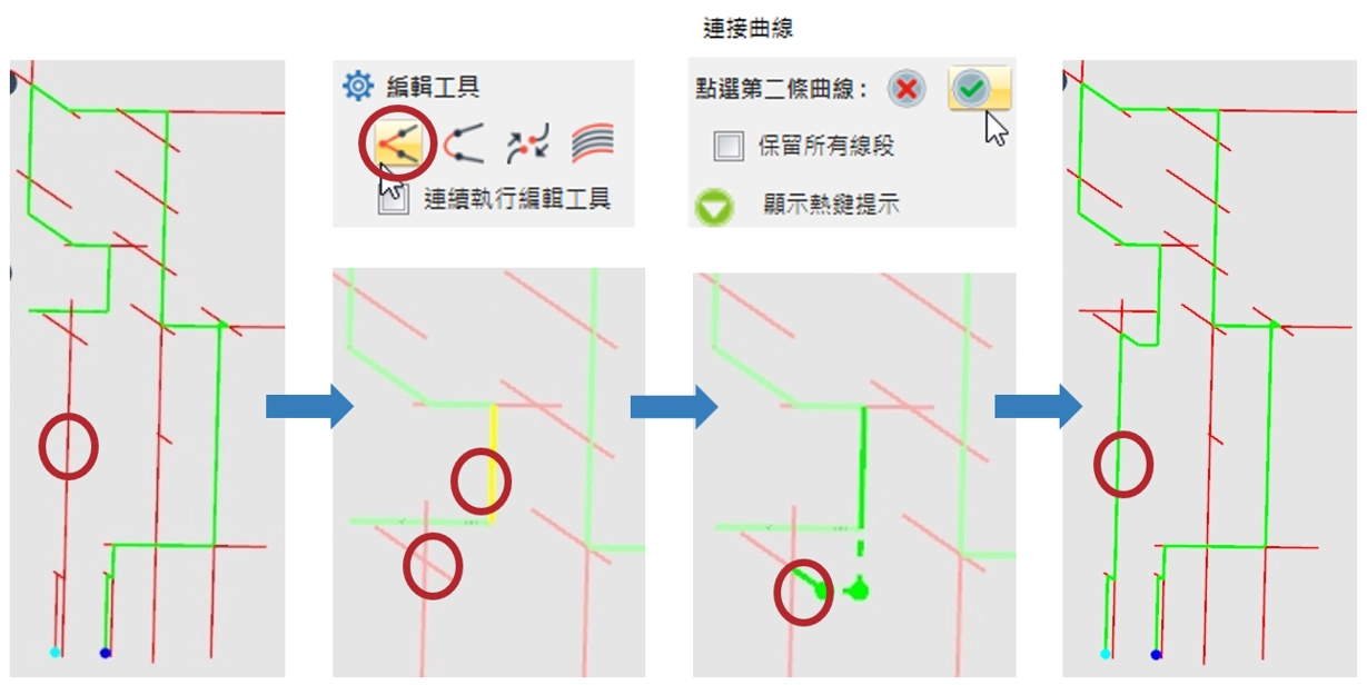 步驟2:整理連接不完整的水路線條
