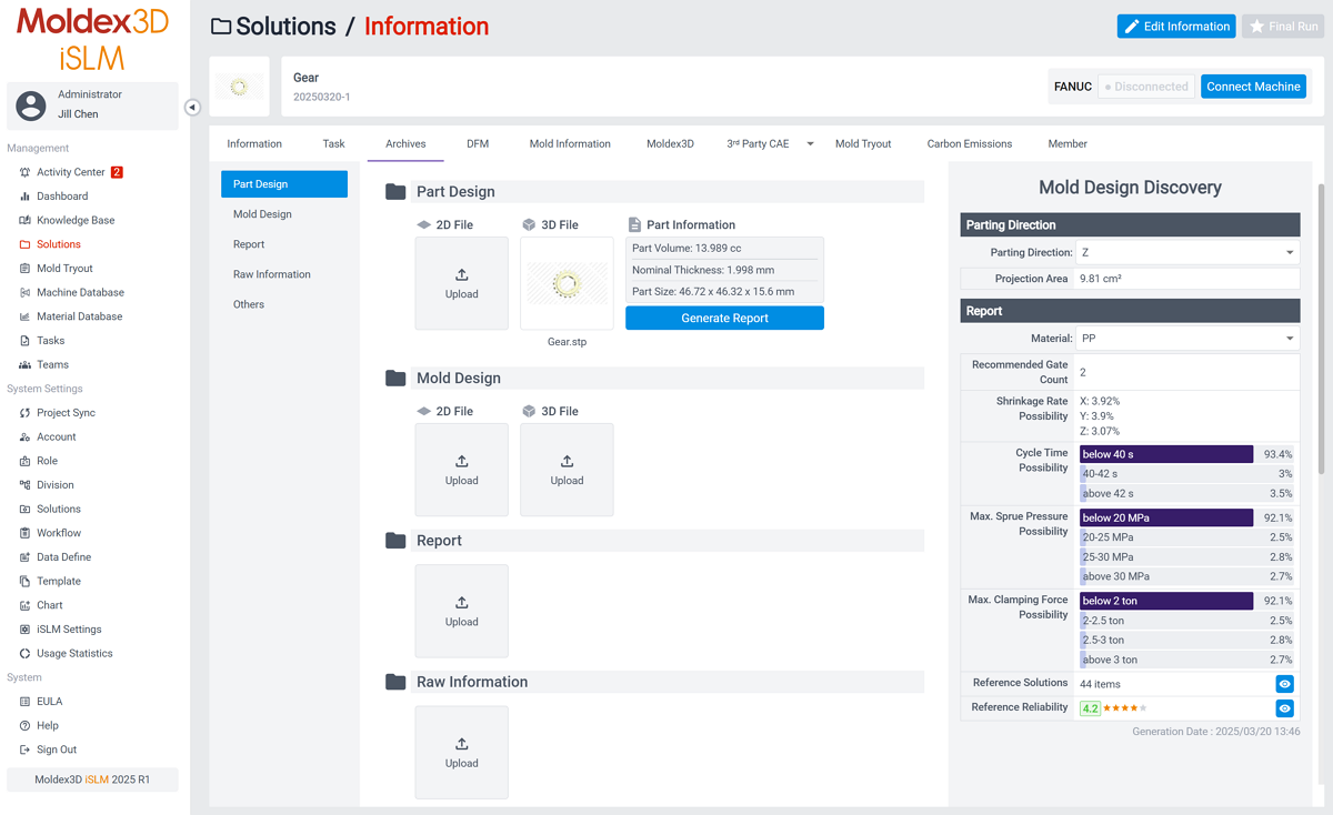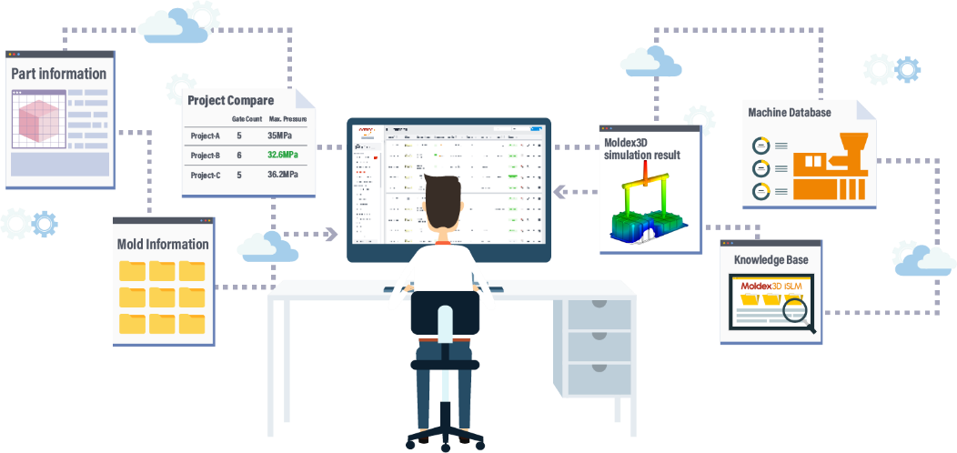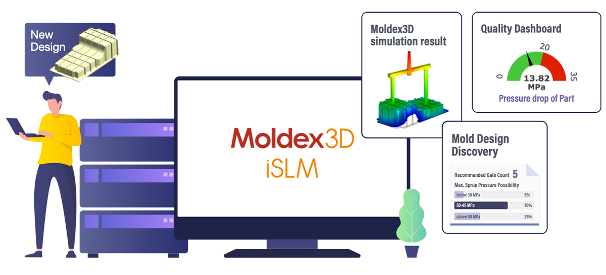 專為模具設計與塑膠成型打造的數據管理平台 Moldex3D iSLM,協助企業建構完整資料庫,記錄開發過程中所有工作歷程的數據、資料。同時,iSLM 結合自動化模具設計導引系統與 AI 最佳化等智慧化應用,發揮數據的最大價值,提升整體製程效率與品質。目前在 iSLM,除了知識庫功能中的模具相似度比對、專案管理功能中的自動提取澆口功能之外,今年更進一步推出能提供智能成型預測的 Mold Design Discovery 和 Gate Design Discovery 兩大功能,協助企業快速識別最佳設計方案。