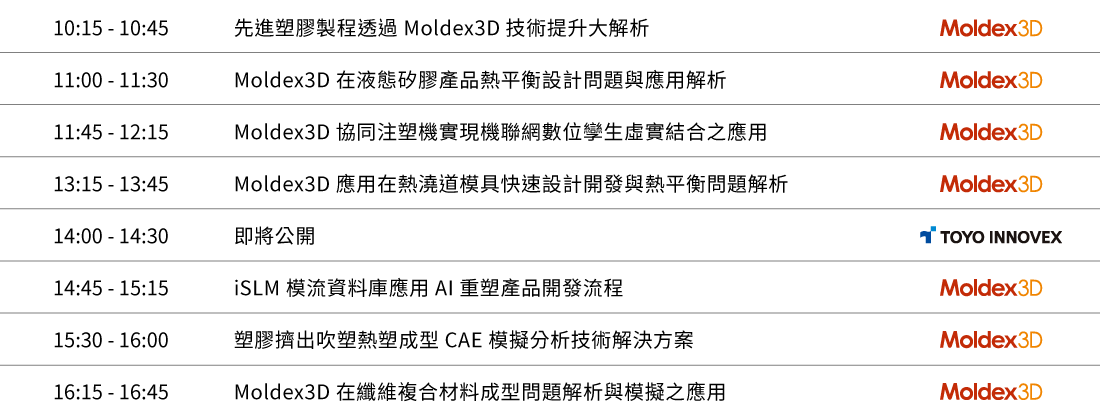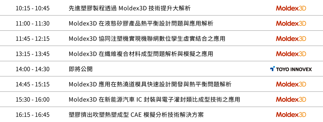 在這個充滿挑戰的科技時代,Moldex3D將展現最前沿的解決方案,幫助您在洞察大勢中把握每個得來不易的機會、從競爭激烈的市場中脫穎而出。期待您的光臨,與我們共同開啟塑膠模流分析的新時代!